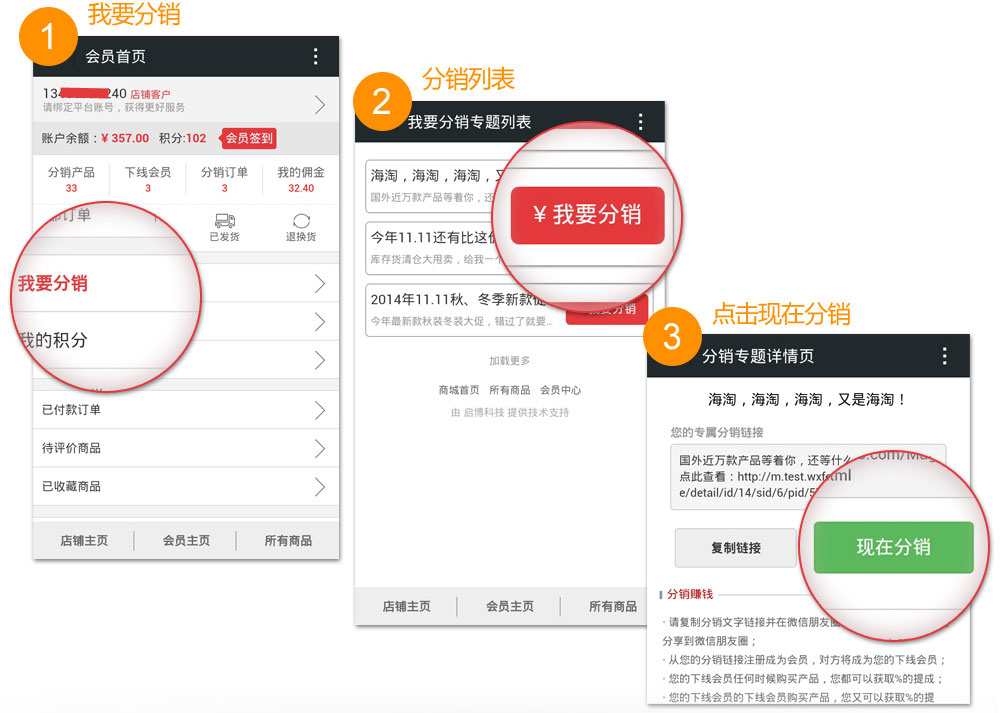 基于微信朋友圈的传播,是打造以分销商为中心的全新微信分销体验。
